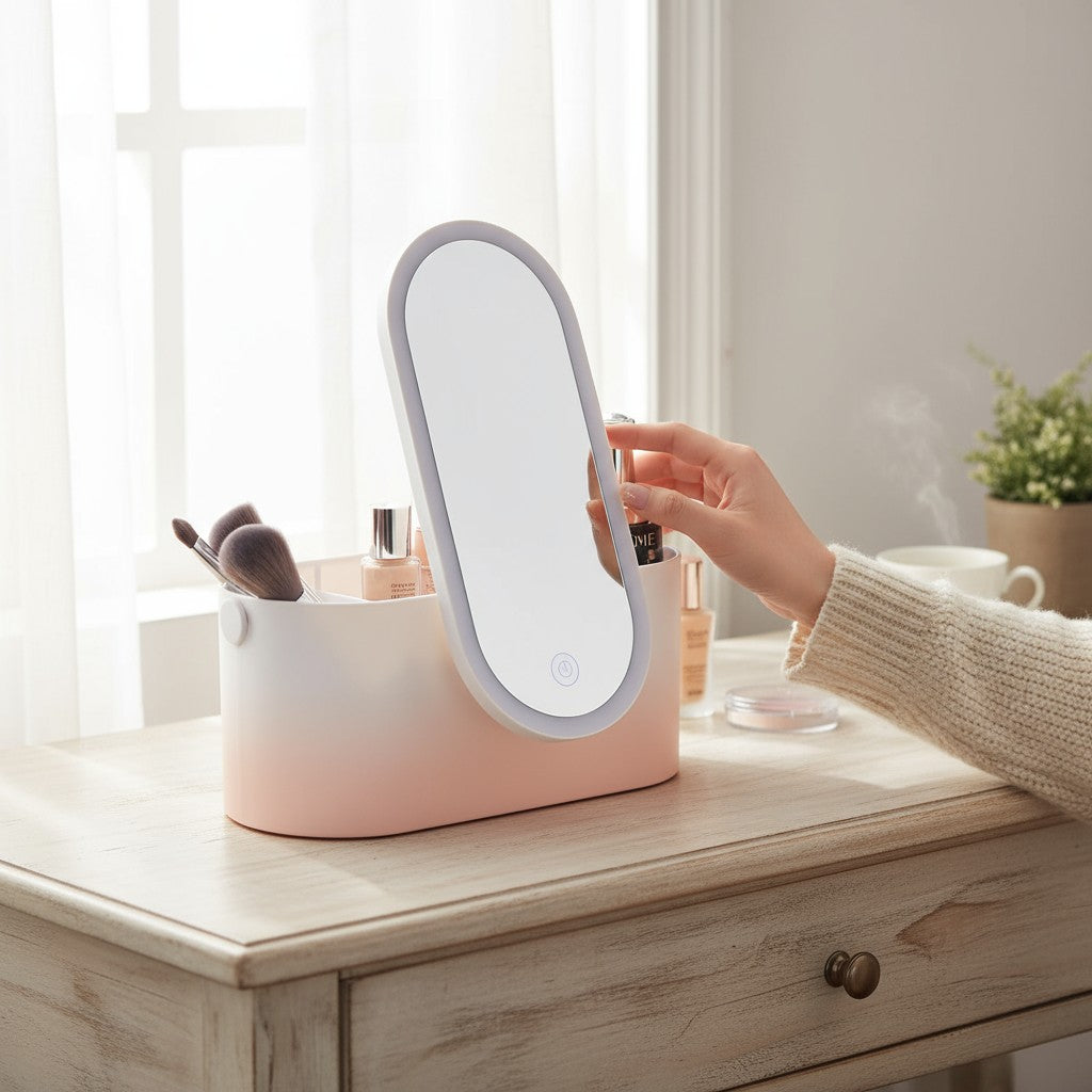 Stay organized wherever you go with this sleek Portable LED Makeup Organizer Box. Thoughtfully designed to blend functionality with calm design, it keeps your beauty essentials neatly stored while adding a touch of minimalist style to your space.